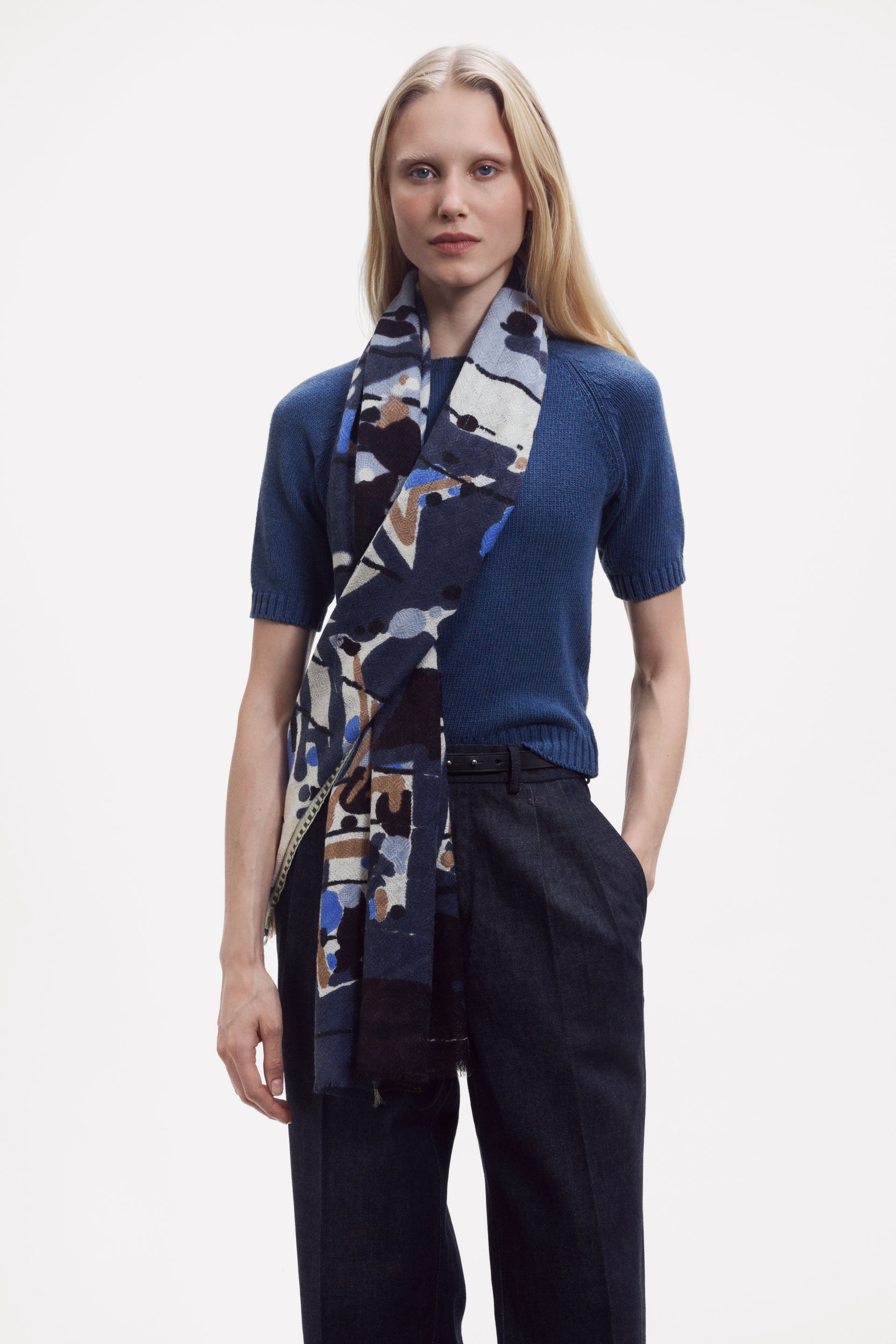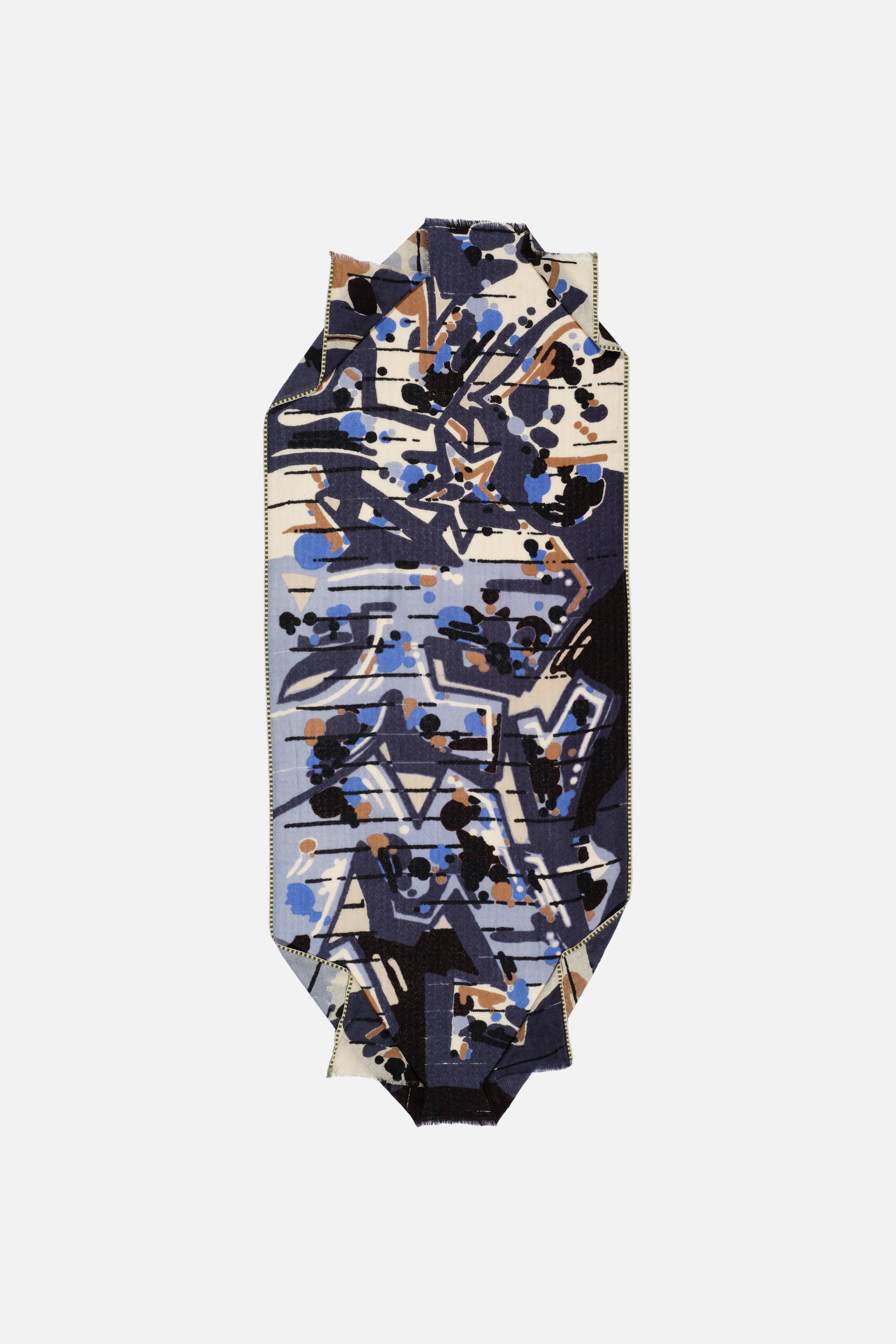 Tai ne tik aksesuaras, bet ir meno kūrinys, kurį nešiosite ant savo pečių. Šio šalikėlio lengvas, plastiškas audimas ir subtili tekstūruota apdaila sukuria rafinuotą prabangos įspūdį. Drąsus Graffiti raštas, įkvėptas Kopenhagos Christianijos rajono gatvės meno, pulsuoja energija ir kūrybine laisve, tačiau kartu dera su natūralių pluoštų švelnumu bei elegancija.