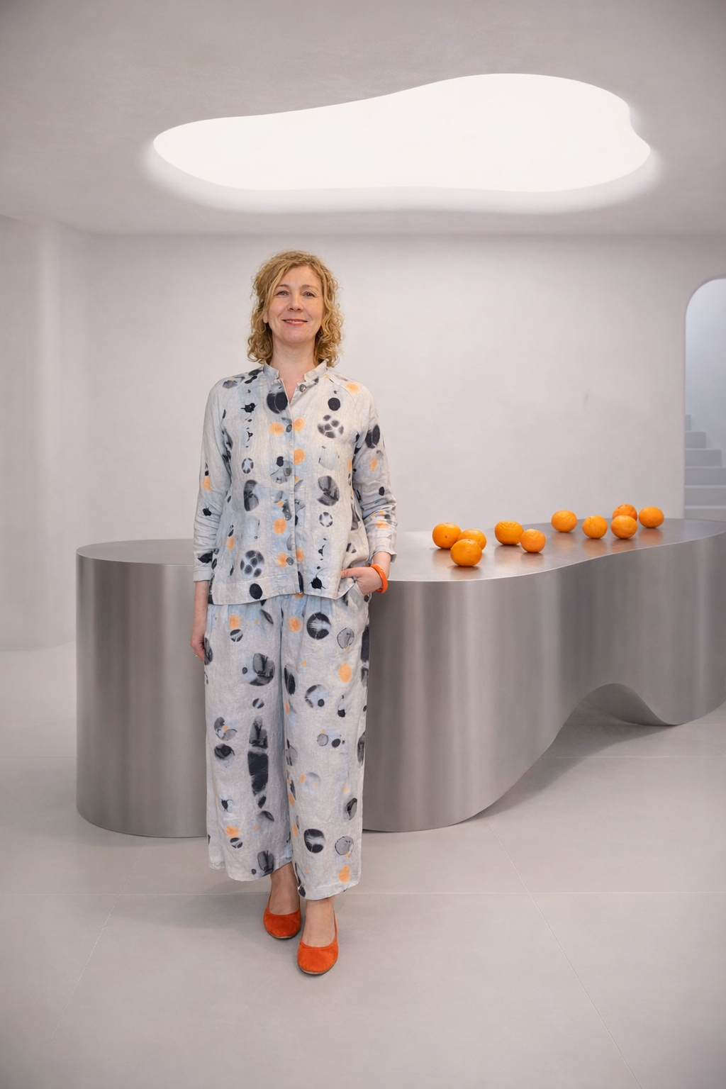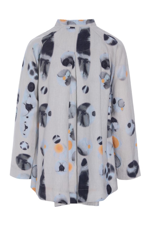 Mandarino tipo apykaklė suteikia švarkui modernios elegancijos, o ilgos raglano rankovės kuria minkštą, natūraliai krintantį siluetą. Per visą ilgį einantis sagų užsegimas leidžia jį dėvėti tiek užsegtą, tiek atsegtą – sluoksniuojant pagal nuotaiką ar sezoną. Nugaros dalyje esanti plati klostė suteikia judesio laisvės ir subtilios apimties.