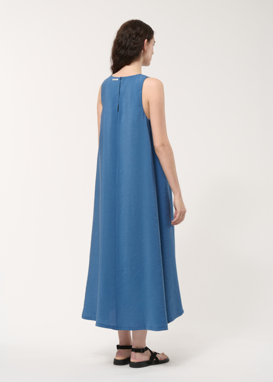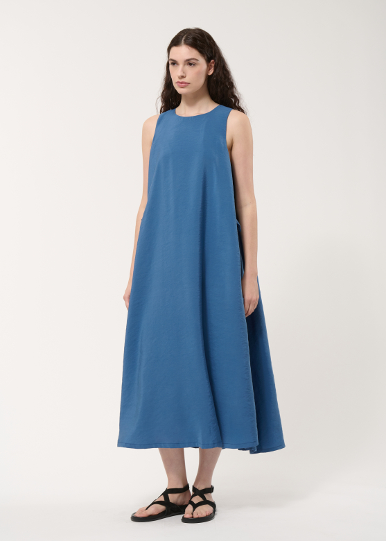 Prancūzų kompanijos trapecinio silueto suknelė iš lengvai raukšlėto modalo išsiskiria moderniu paprastumu, lengvumu ir nevaržomu komfortu. Laisvas kirpimas leidžia audiniui gražiai kristi aplink kūną, sukurdamas subtiliai elegantišką, šiuolaikišką įvaizdį.