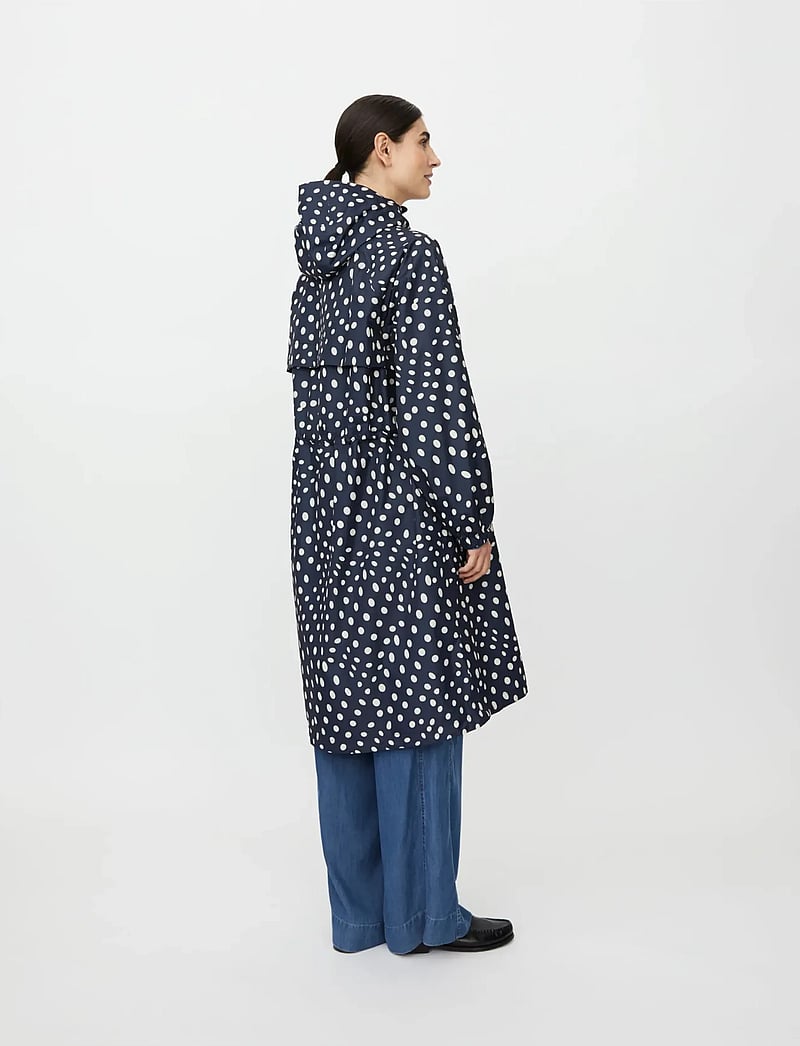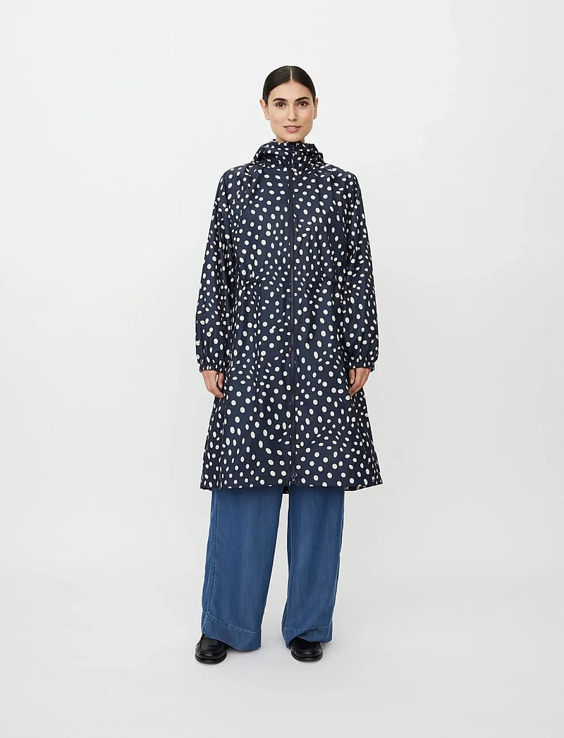 Lengvas sluoksnis labai svarbus, kai keičiasi oras. Šis ilgas lietpaltis užsegamas užtrauktuku priekyje ir aukšta apykakle.