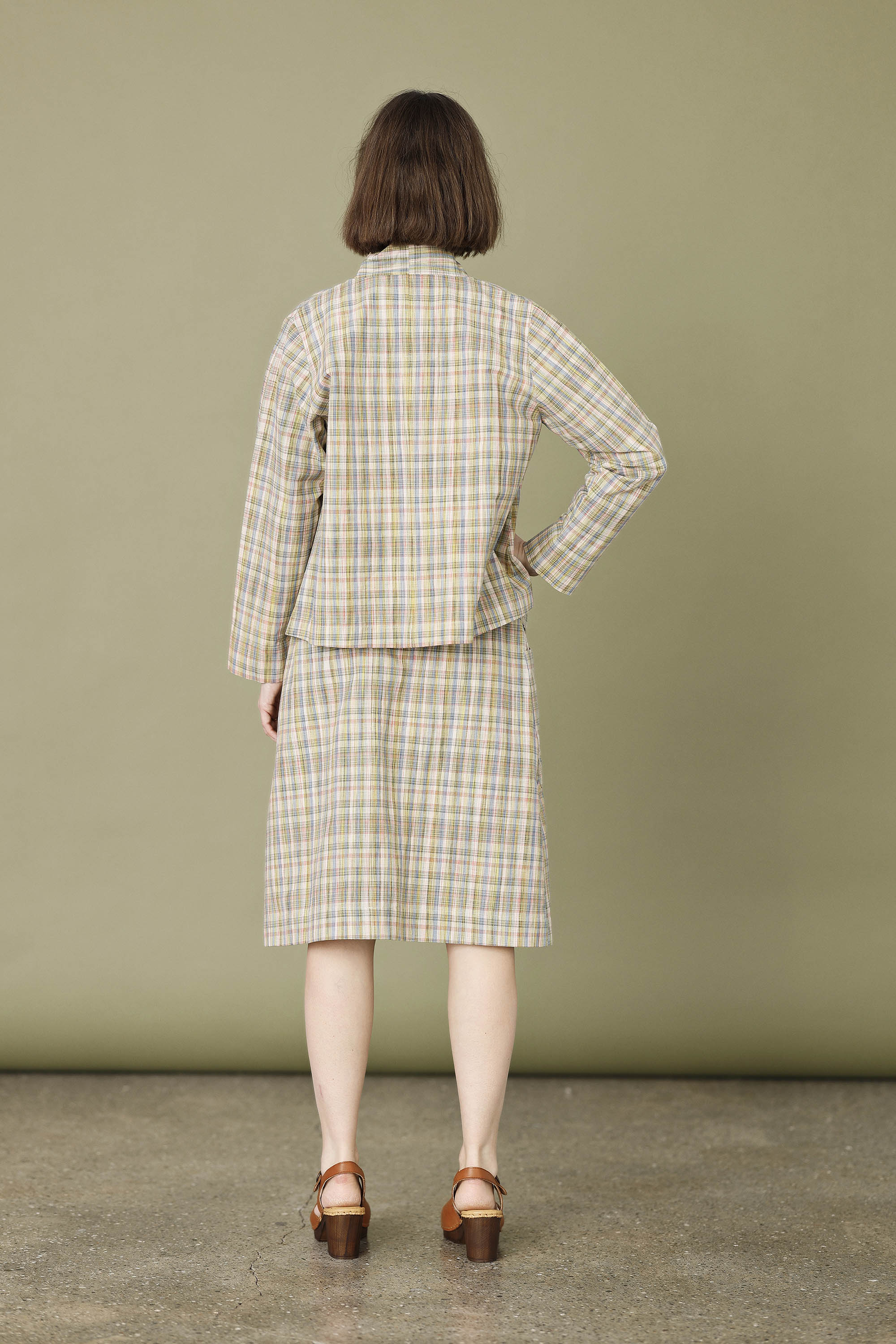 Išskirtinis McVerdi švarkelis, kuriame susilieja charakteris, spalva ir subtili forma. Šis modelis pasiūtas iš ypatingo medvilninio audinio, austo iš margintų siūlų, todėl išsiskiria savitu, ikat raštą primenančiu efektu. Spalvų derinys suteikia jam gyvybingumo ir leidžia lengvai priderinti prie įvairių vasaros garderobo atspalvių – nuo žalios ir rožinės iki mėlynos ar sodrios avietinės.