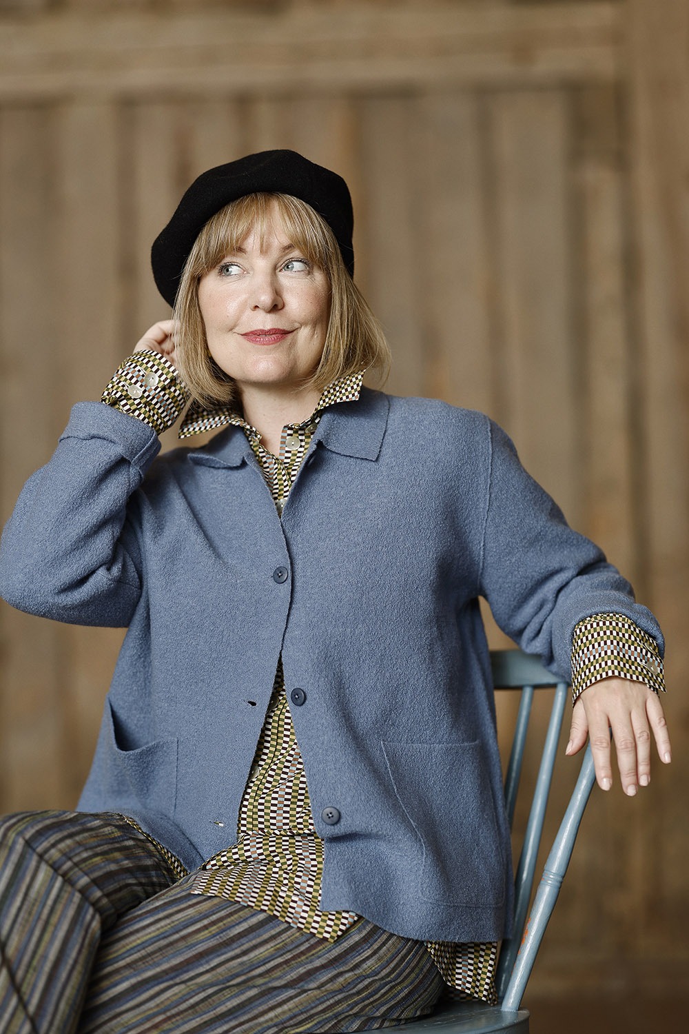 Trumpas mėlynas vilnos švarkelis iš Mansted – jaukumo ir elegancijos derinys, kuriame susitinka megztinio patogumas ir švarko tvarkingumas. Tai vienas populiariausių Mansted modelių, vertinamas dėl universalumo bei subtilių detalių.